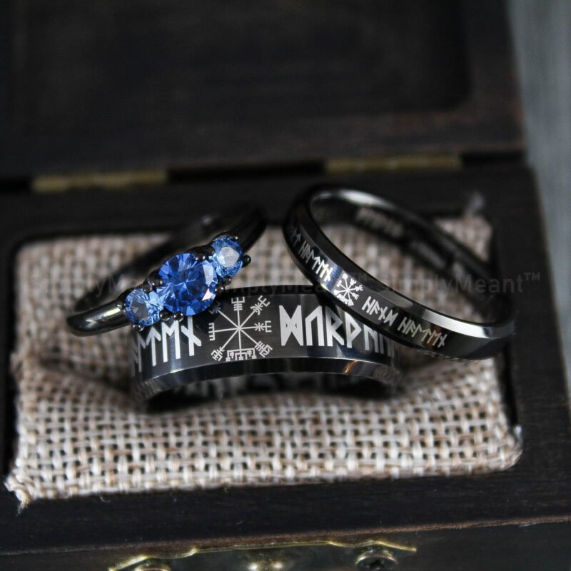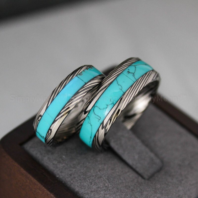 $218.00Blue Wedding Rings, Couple Wedding Bands, Couple Ring Set, Blue Wedding Bands