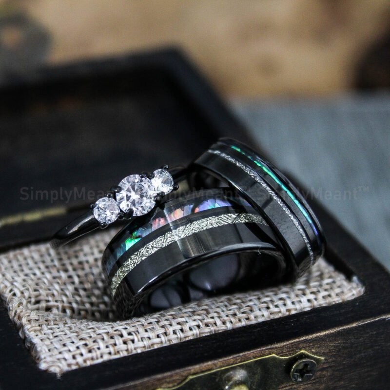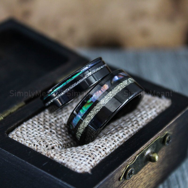 Abalone Shell Rings, Meteorite Rings, Couple Rings, Matching Wedding Rings