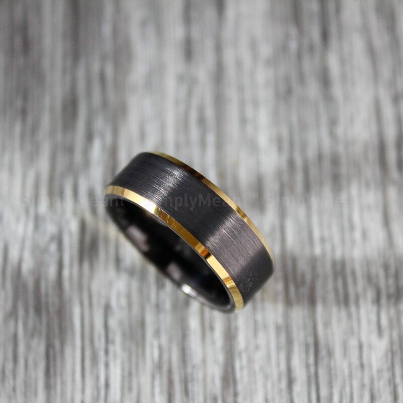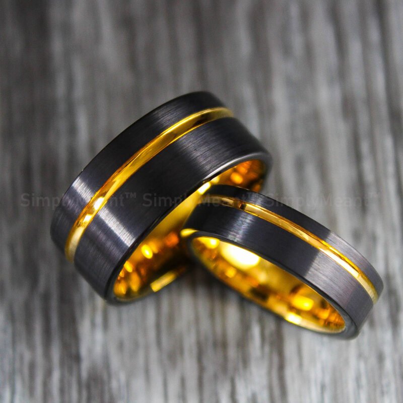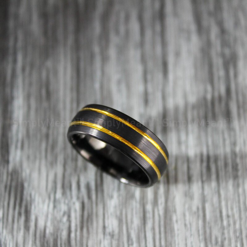 $268.00Black Tungsten Wedding Band, Black Wedding Ring with Yellow Gold Grooves
