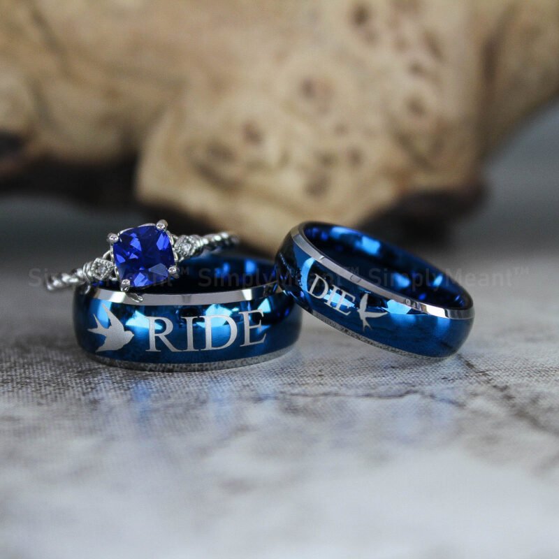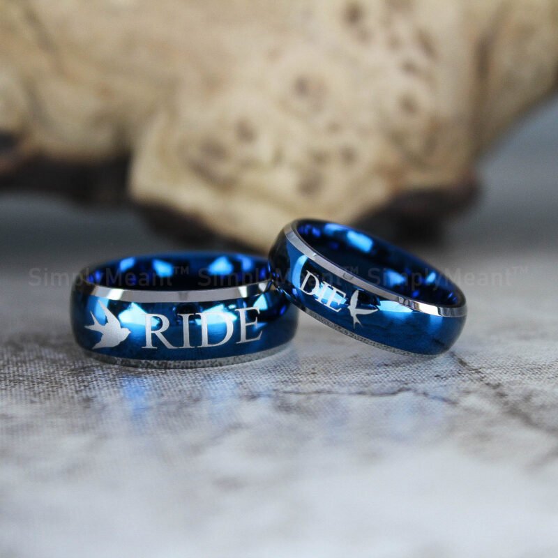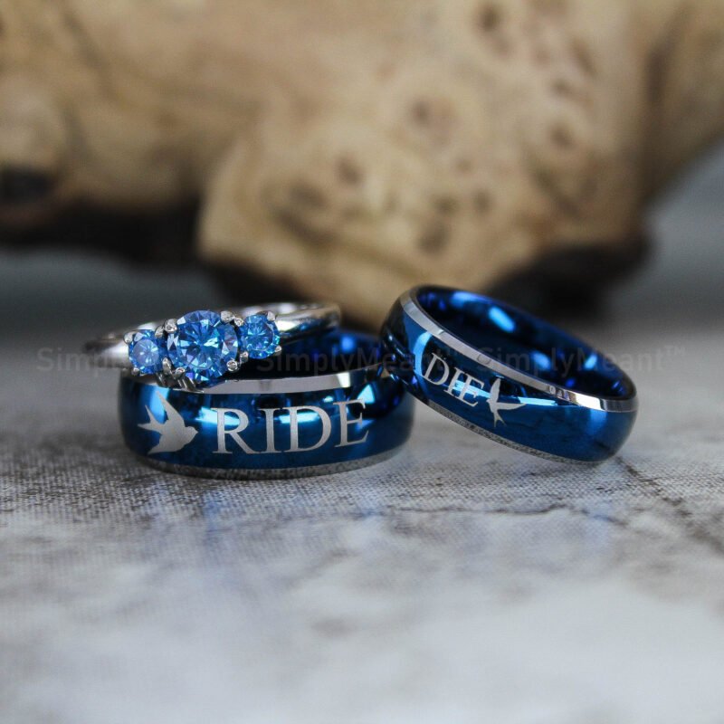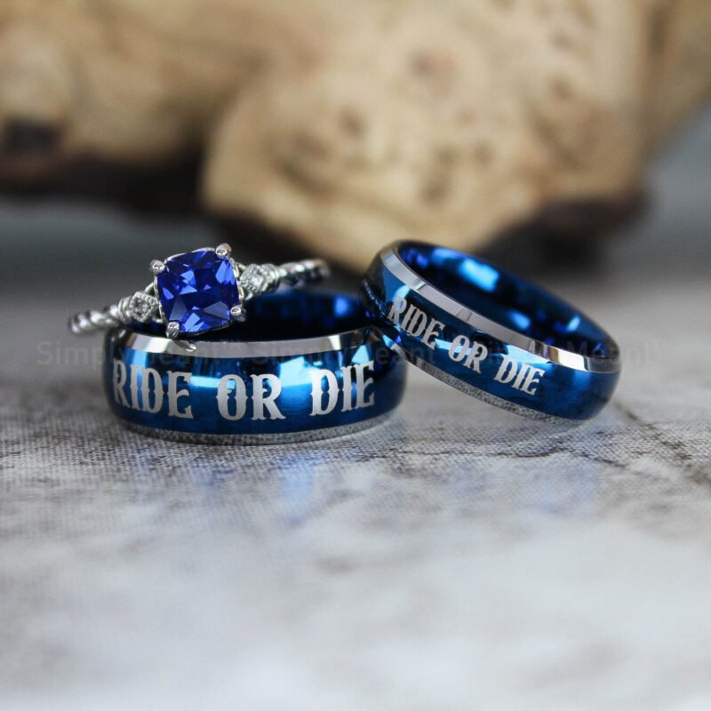 $188.00Ride or Die Rings, Blue Wedding Bands, Couple Ring Set, Matching Couple Rings