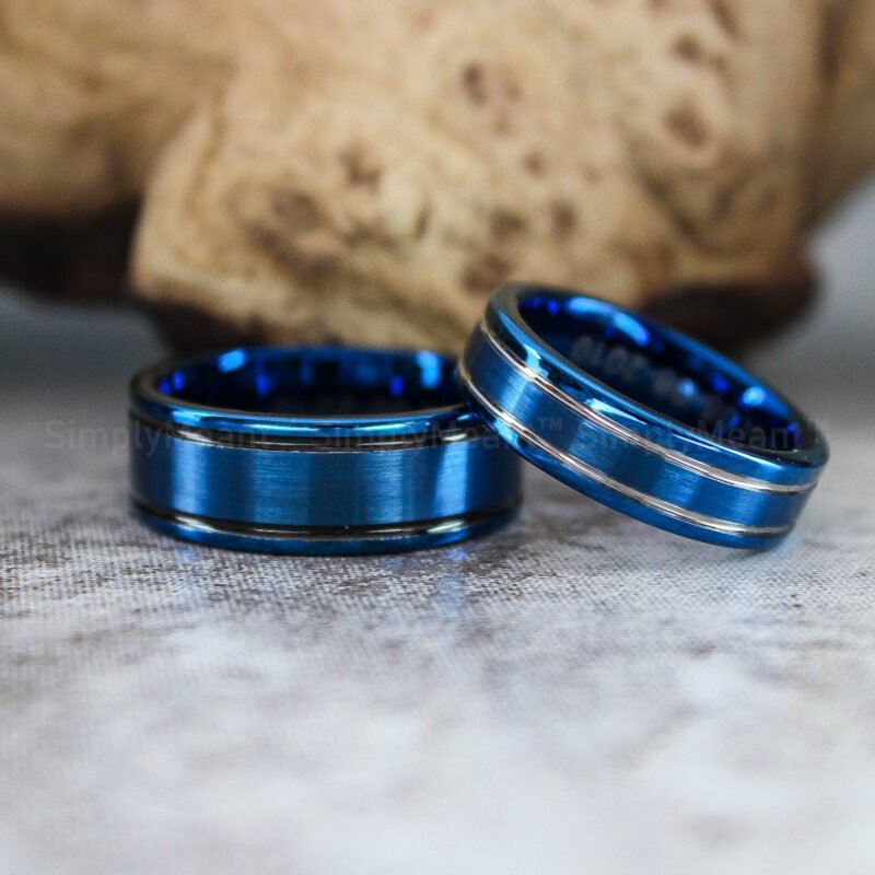 $108.00Blue Wedding Band, Blue Wedding Ring, Blue Tungsten Wedding Band