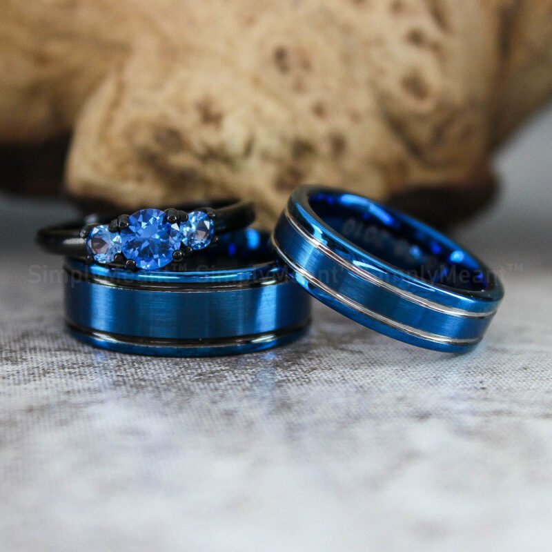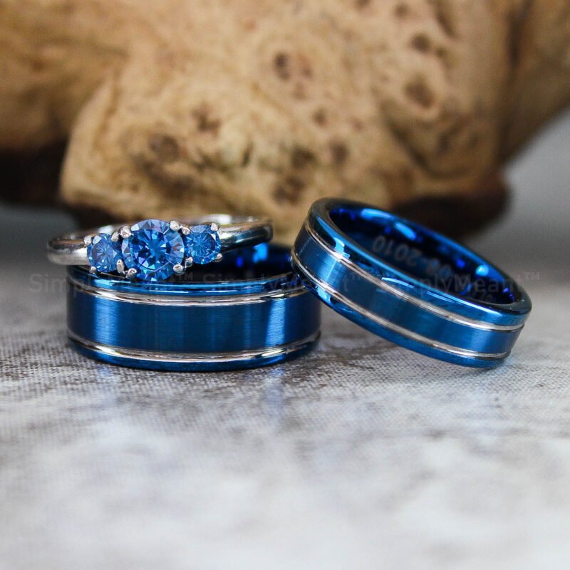 $198.00Blue Wedding Rings, Couple Wedding Bands, Couple Ring Set, Blue Wedding Bands