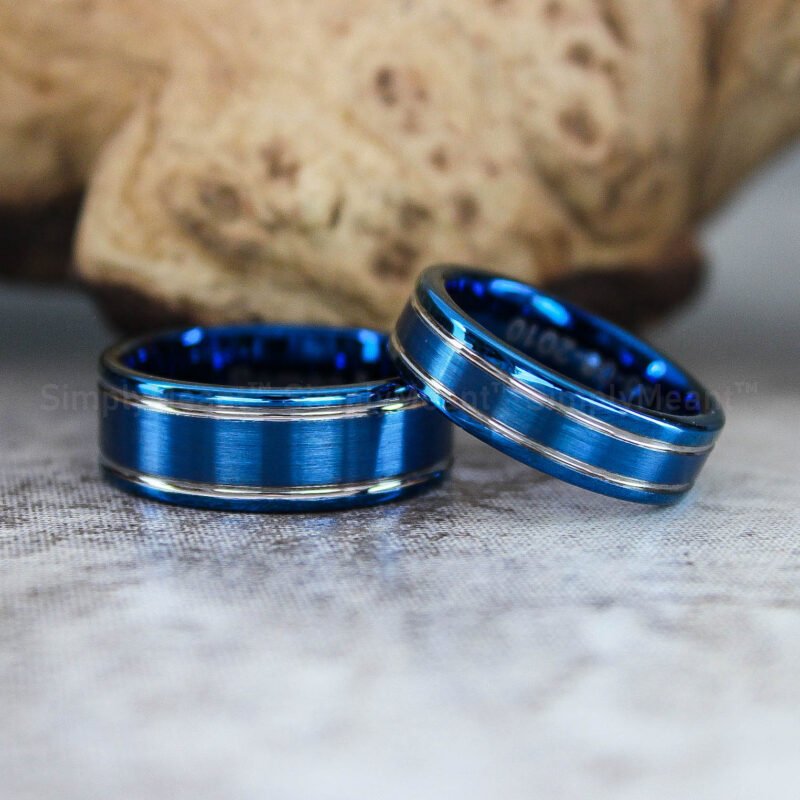 $268.00Blue Wedding Bands, Matching Couple Rings, Blue Wedding Rings, Blue Tungsten Rings, Blue Rings