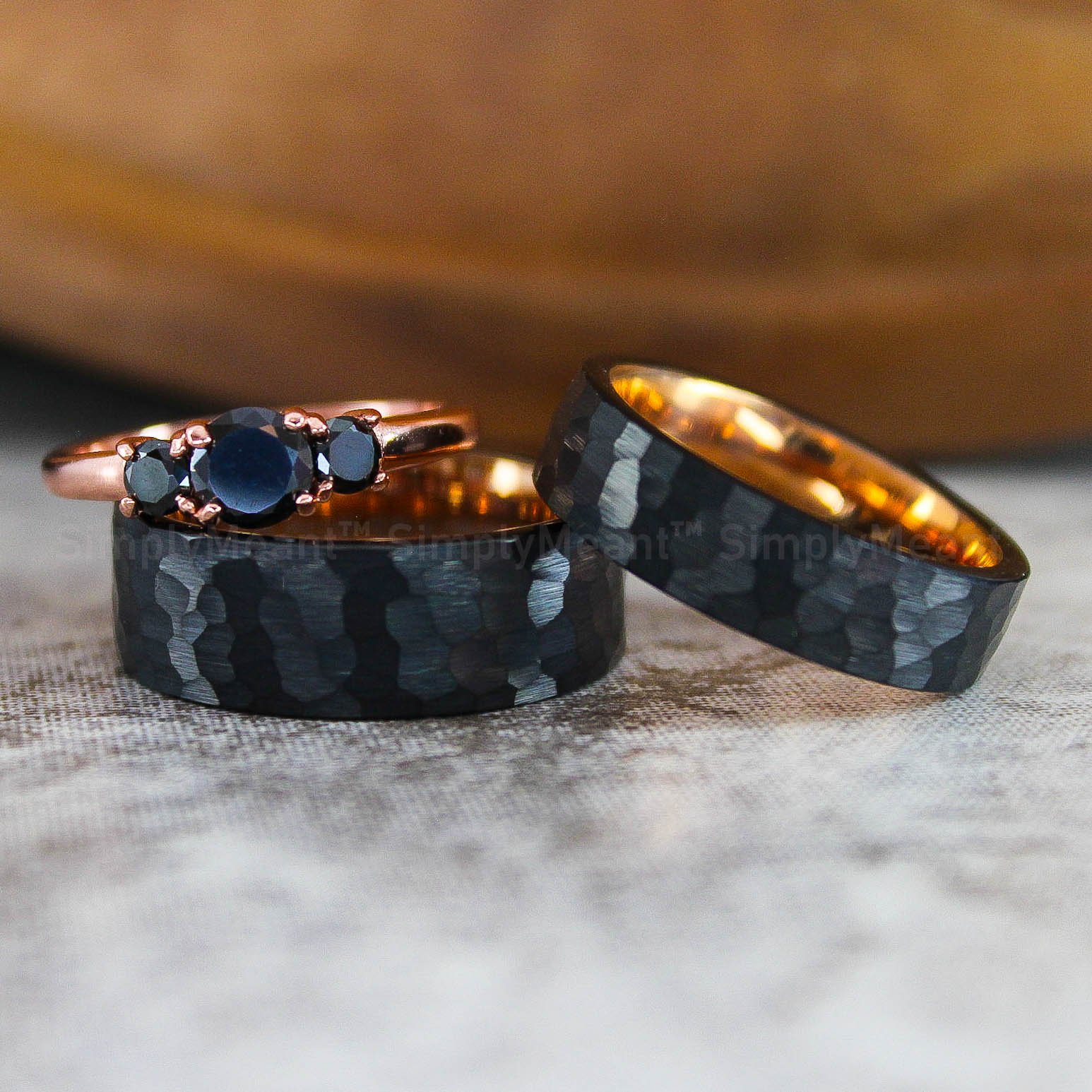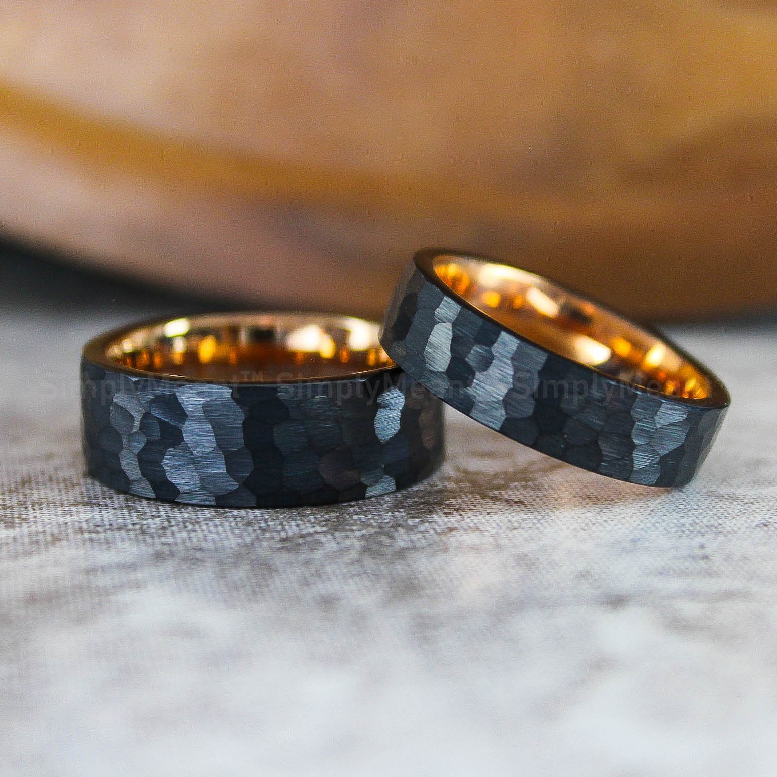Black Hammered Rings, Black Wedding Bands, Hammered Wedding Bands, Black Wedding Rings