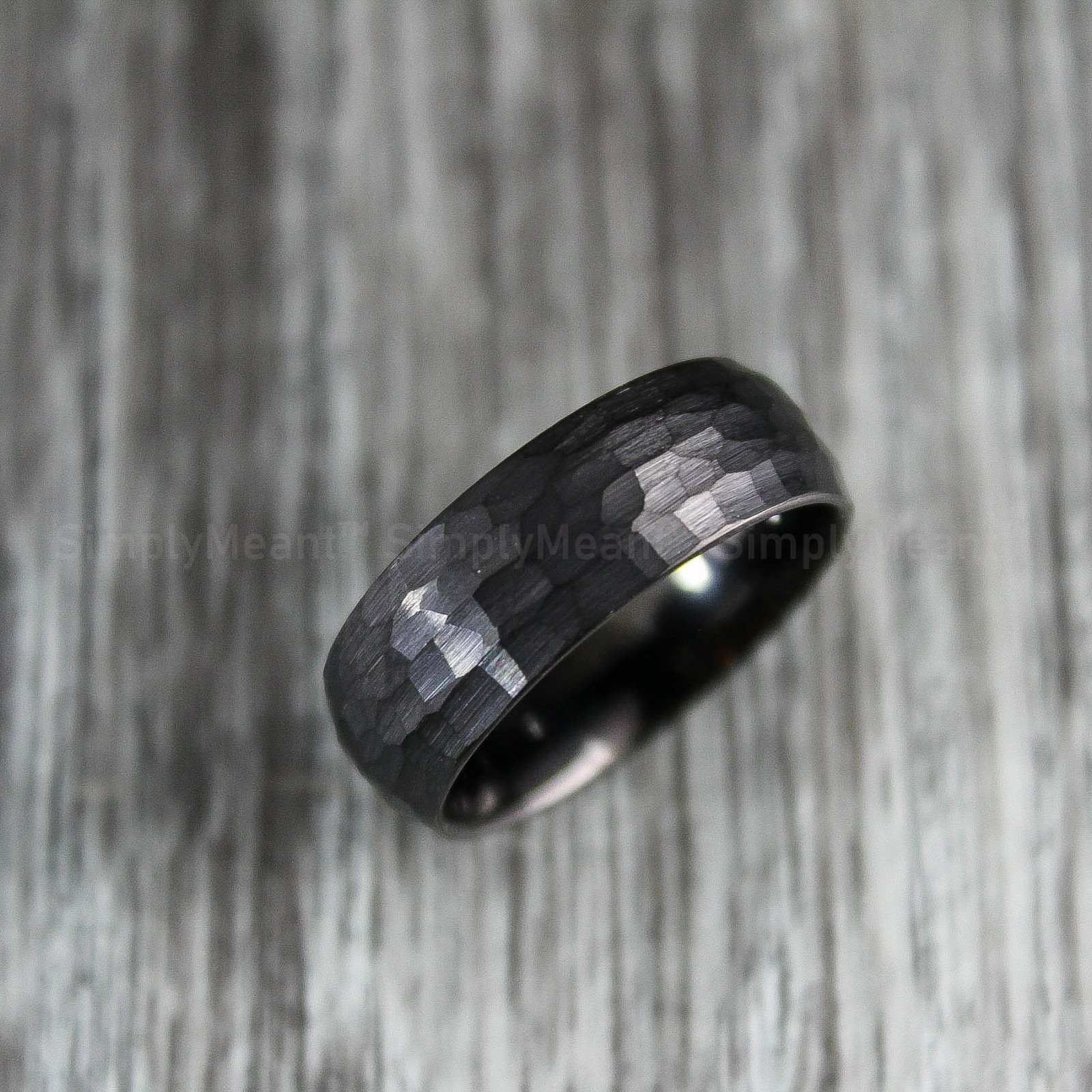 8MM BLACK TUNGSTEN BAND WITH HAMMERED FINISH
