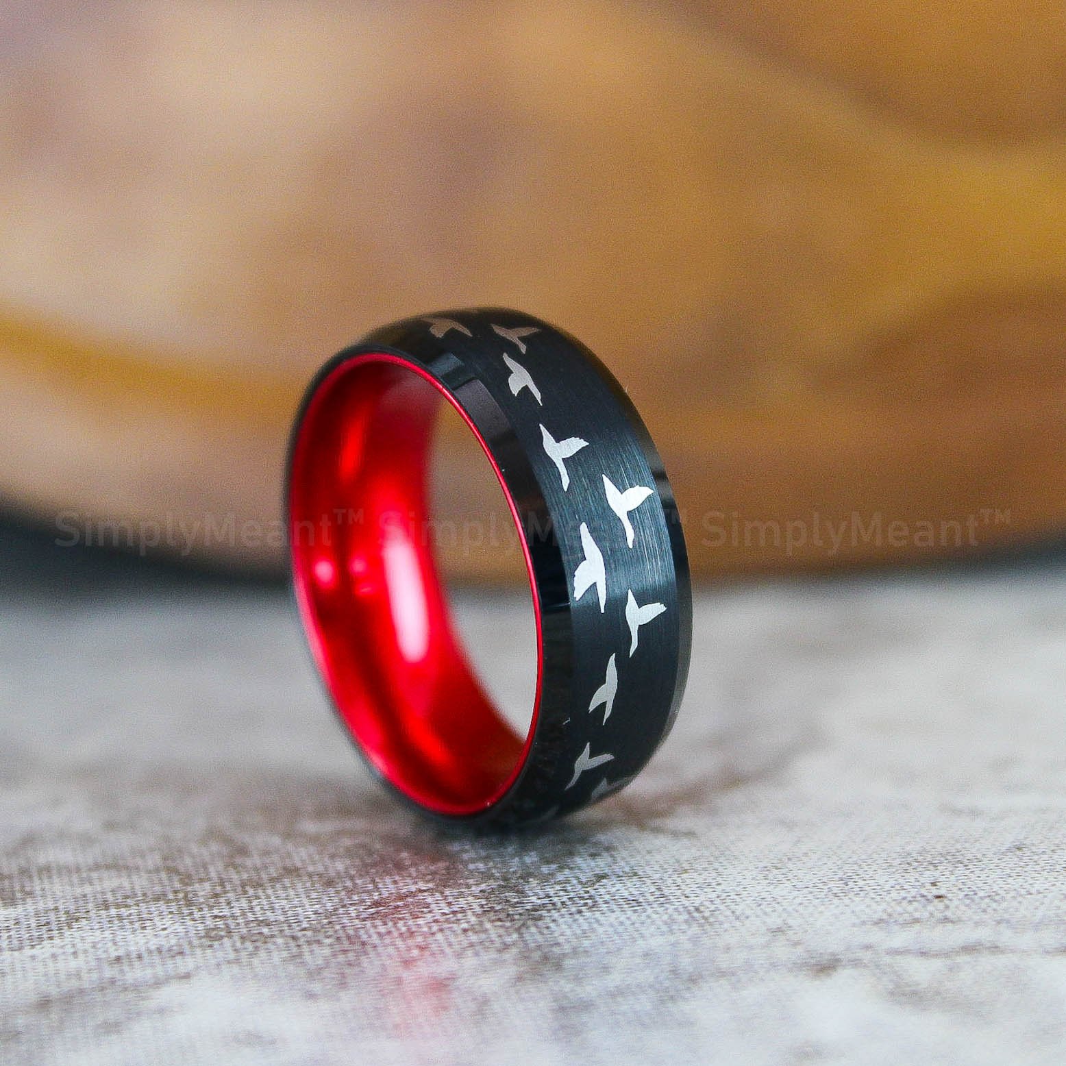 Geese Hunting Ring, Duck Hunting Ring, 8mm Tungsten Band Hunting Ring, Duck Wedding Ring, Hunting Scene Laser Engraved, Black Tungsten Ring