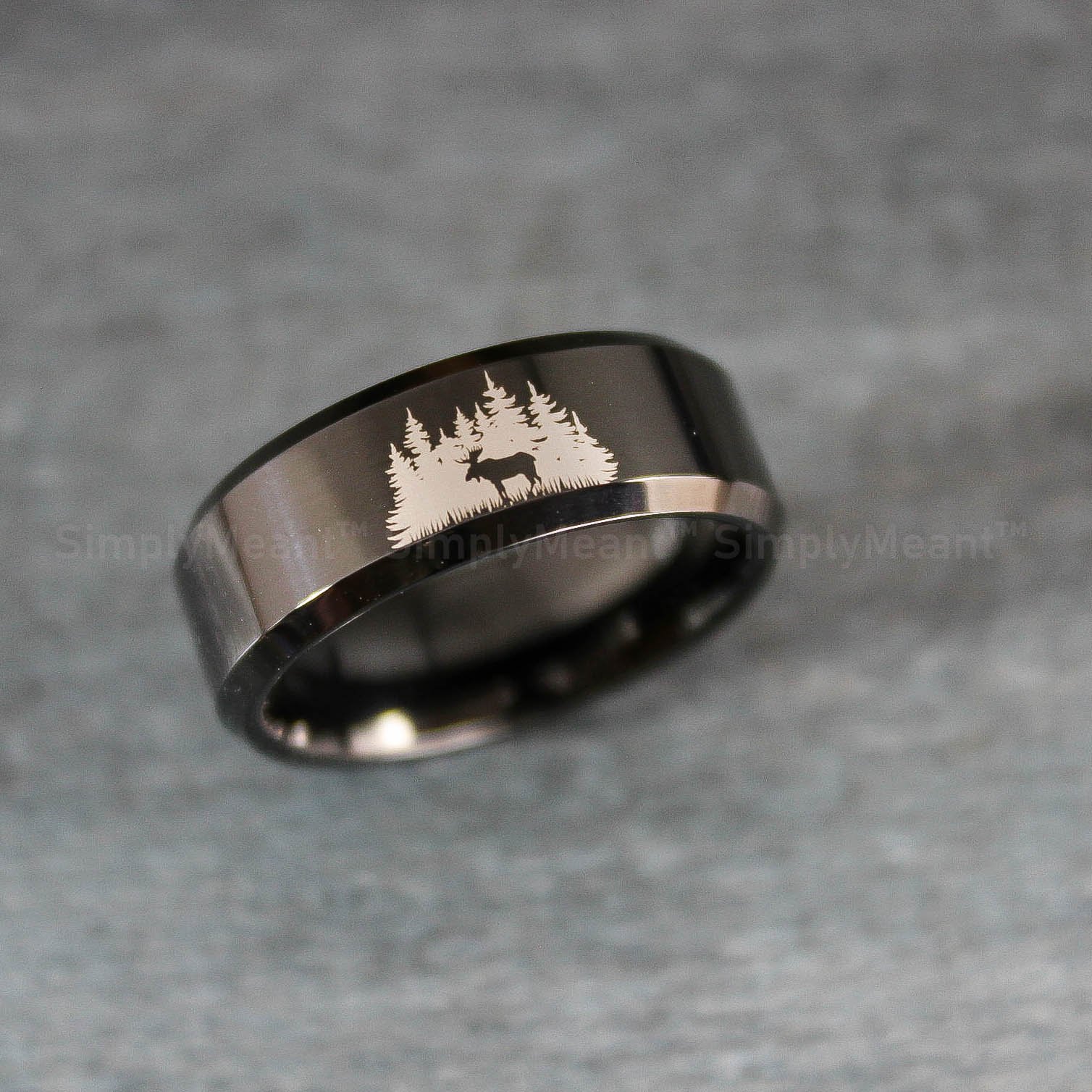 Moose Ring, Moose Tracks Ring, Moose Prints Ring, Hunting Ring, Moose Jewelry, Black Wedding Ring, Hunting Wedding Band, Hunting Jewelry