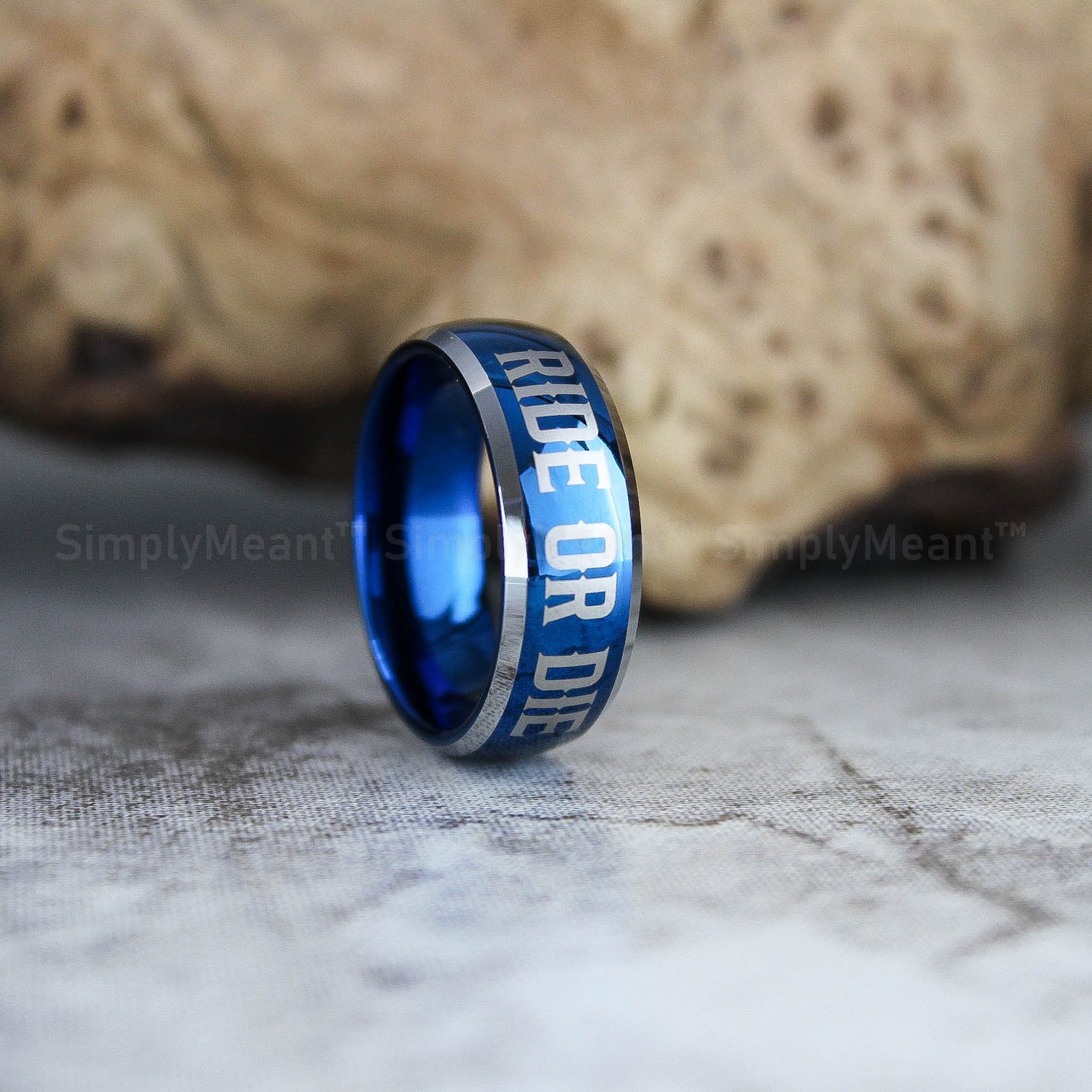 Ride or Die Rings, Blue Wedding Bands, Couple Ring Set, Matching Couple Rings
