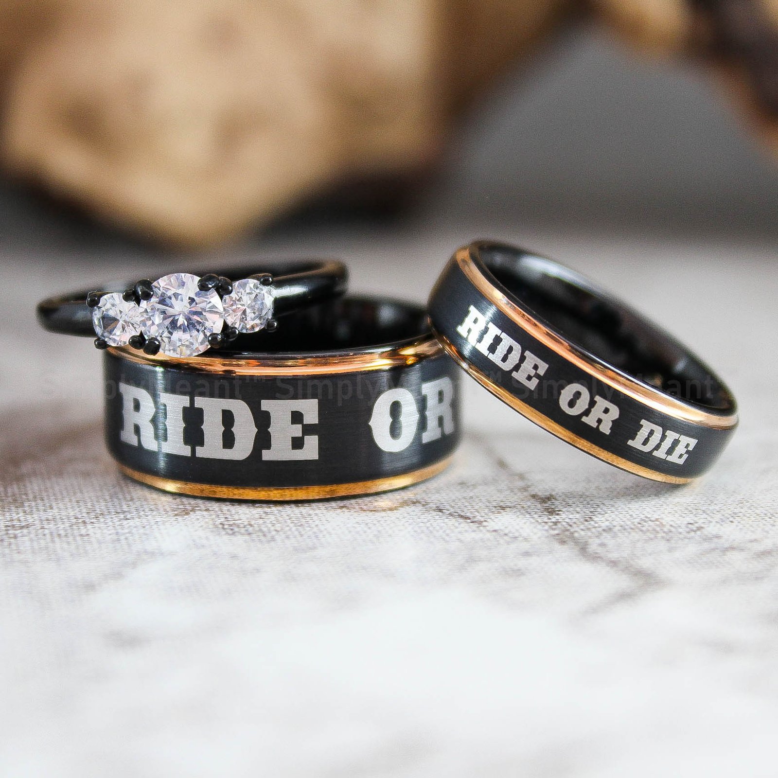 Ride or Die Rings, Ride or Die, Ride or Die Wedding Rings, Ride or Die Wedding Bands, Black Wedding Rings, Black Wedding Bands, Biker Rings