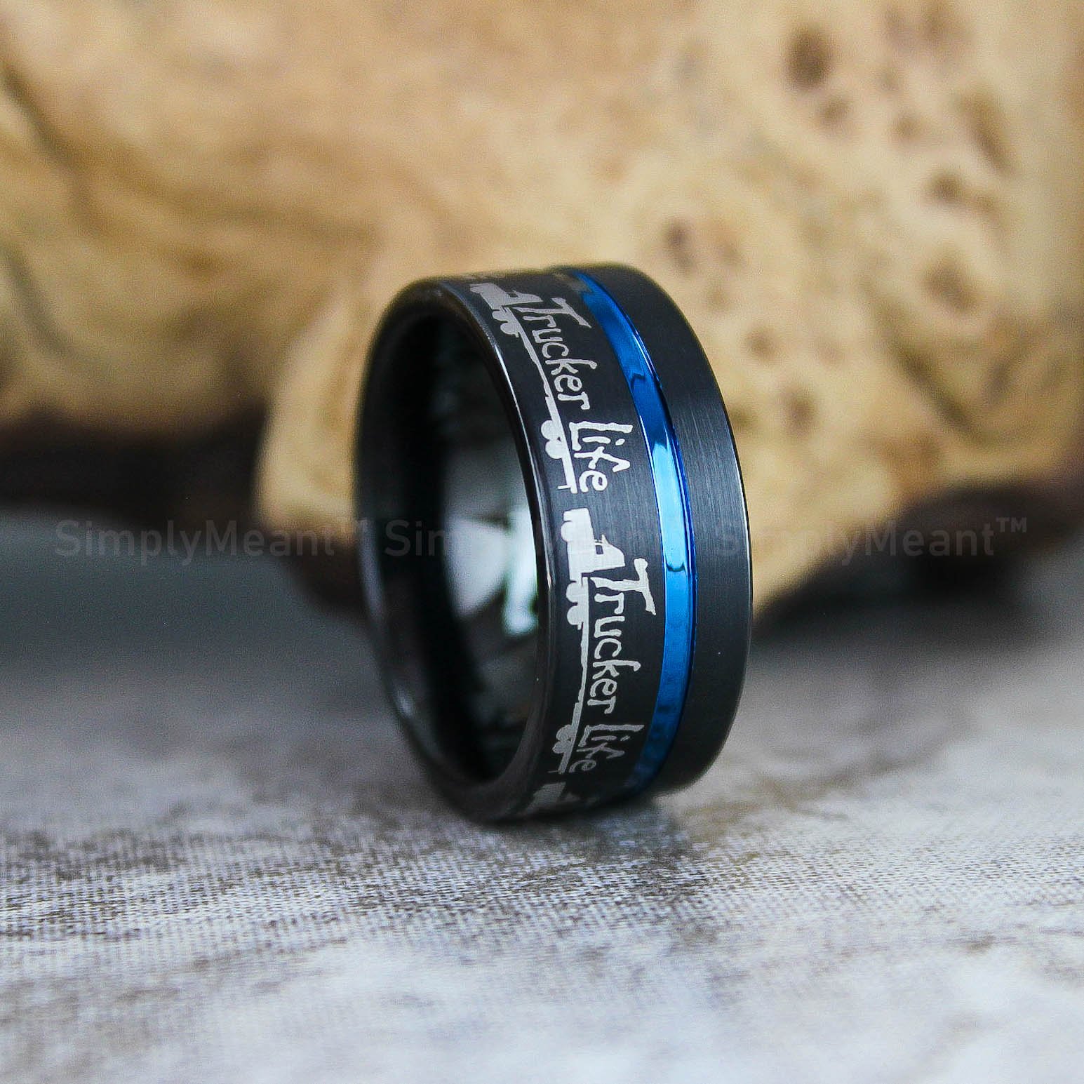Trucker Ring, Trucker Life Ring, Truck Driver Ring, Trucker Jewelry, Black Trucker Ring, Black Tungsten Ring