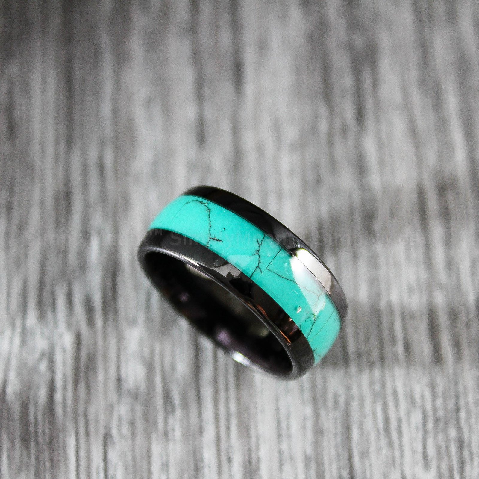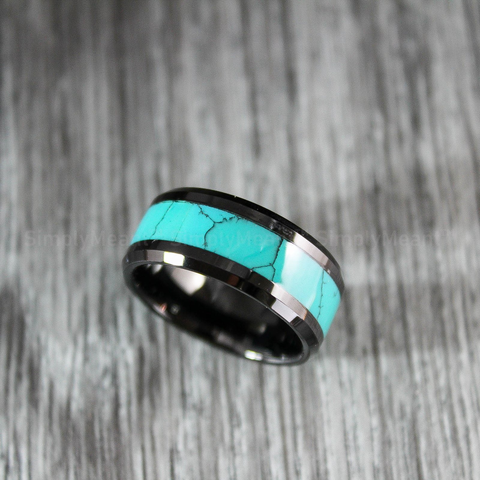 Turquoise Rings, Turquoise Wedding Bands, Black Tungsten Bands with Turquoise Inlay
